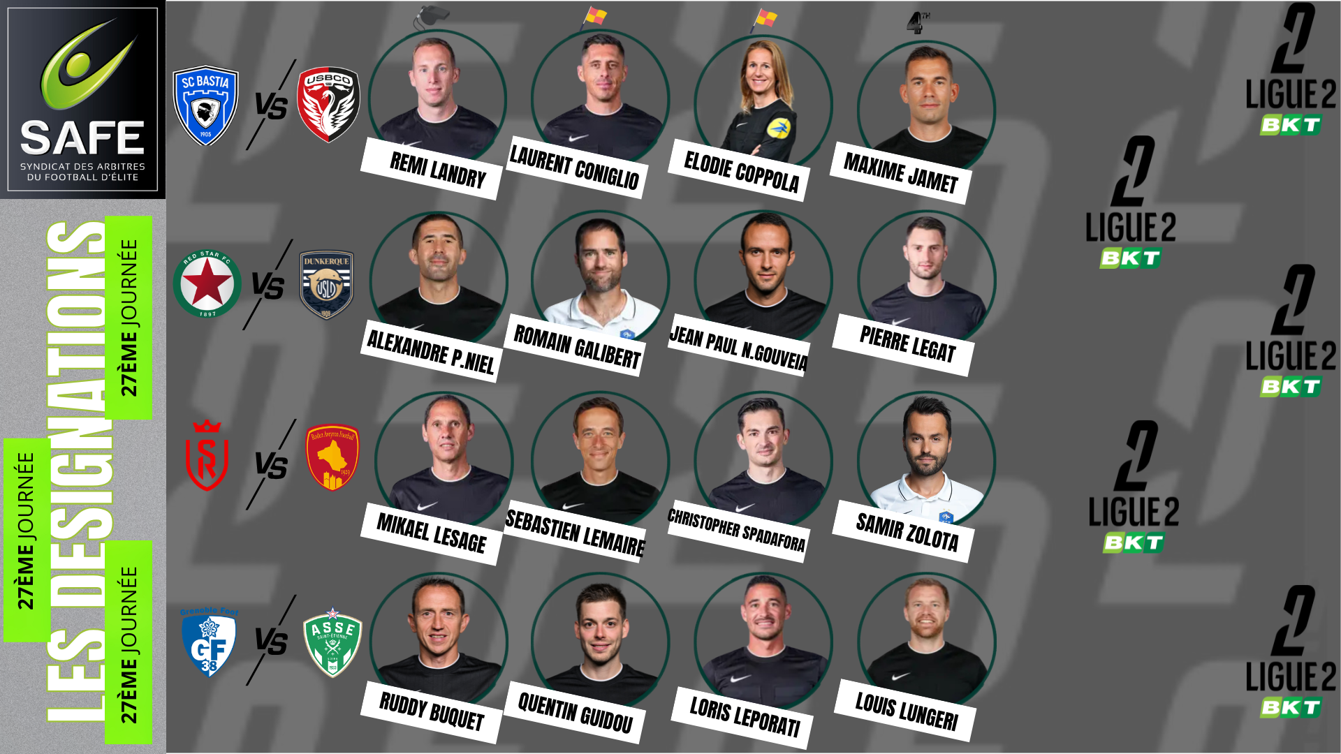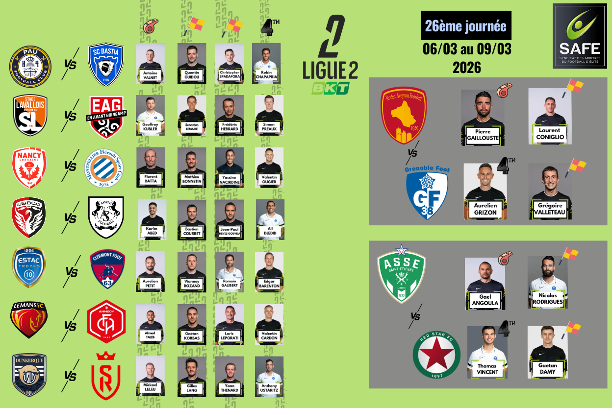 J27 : les arbitres désignés