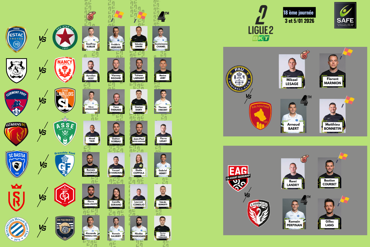 J18 : les arbitres désignés