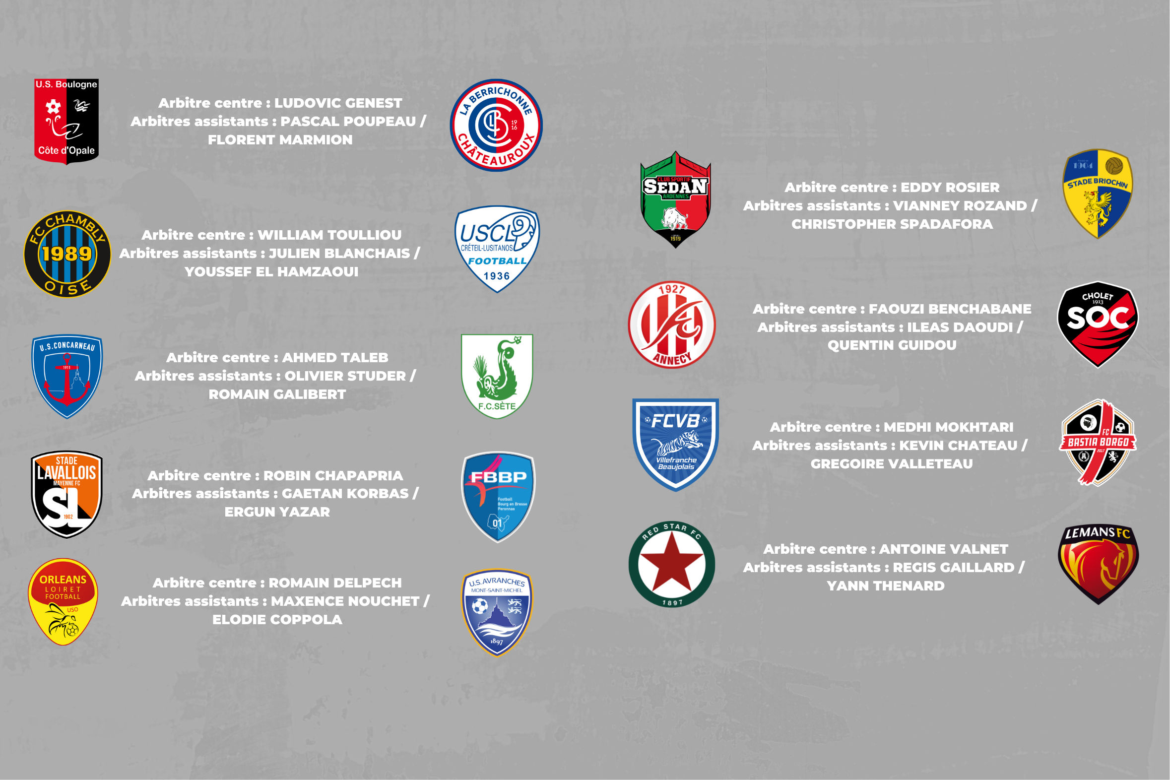 Les arbitres désignés pour la 11ème journée